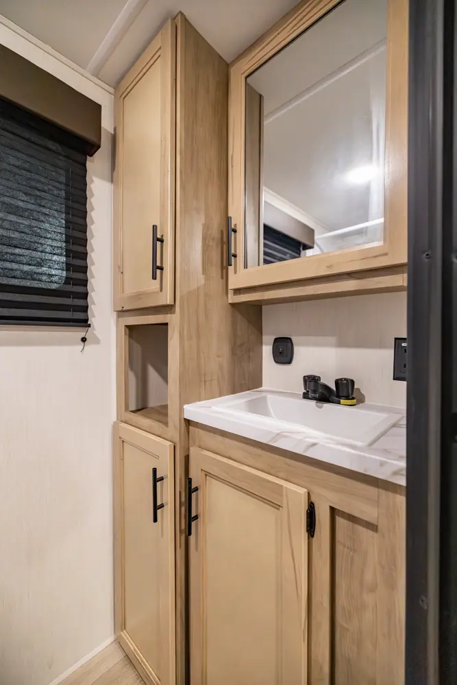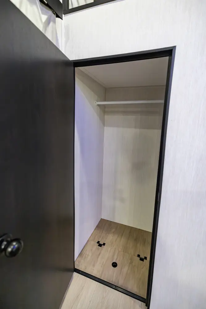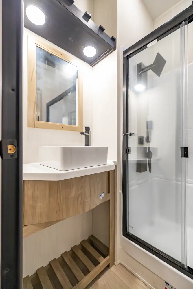 • Blackout Glass, Safety Slam, Friction Hinge Entry Door with Window and Shade Prep (N/A on LP models)