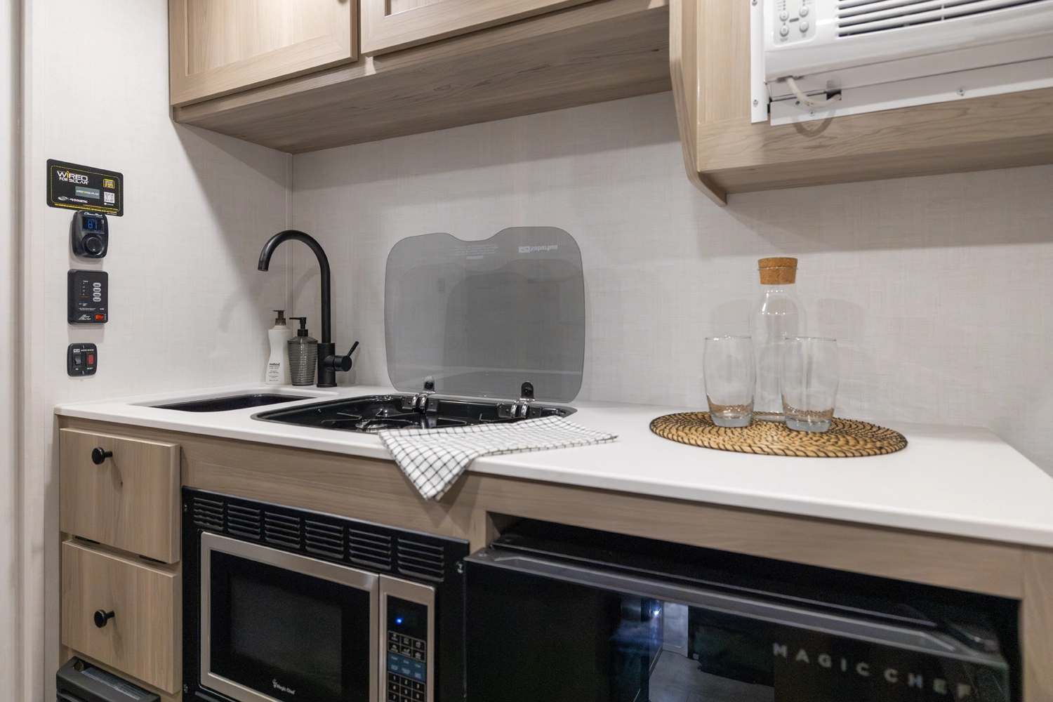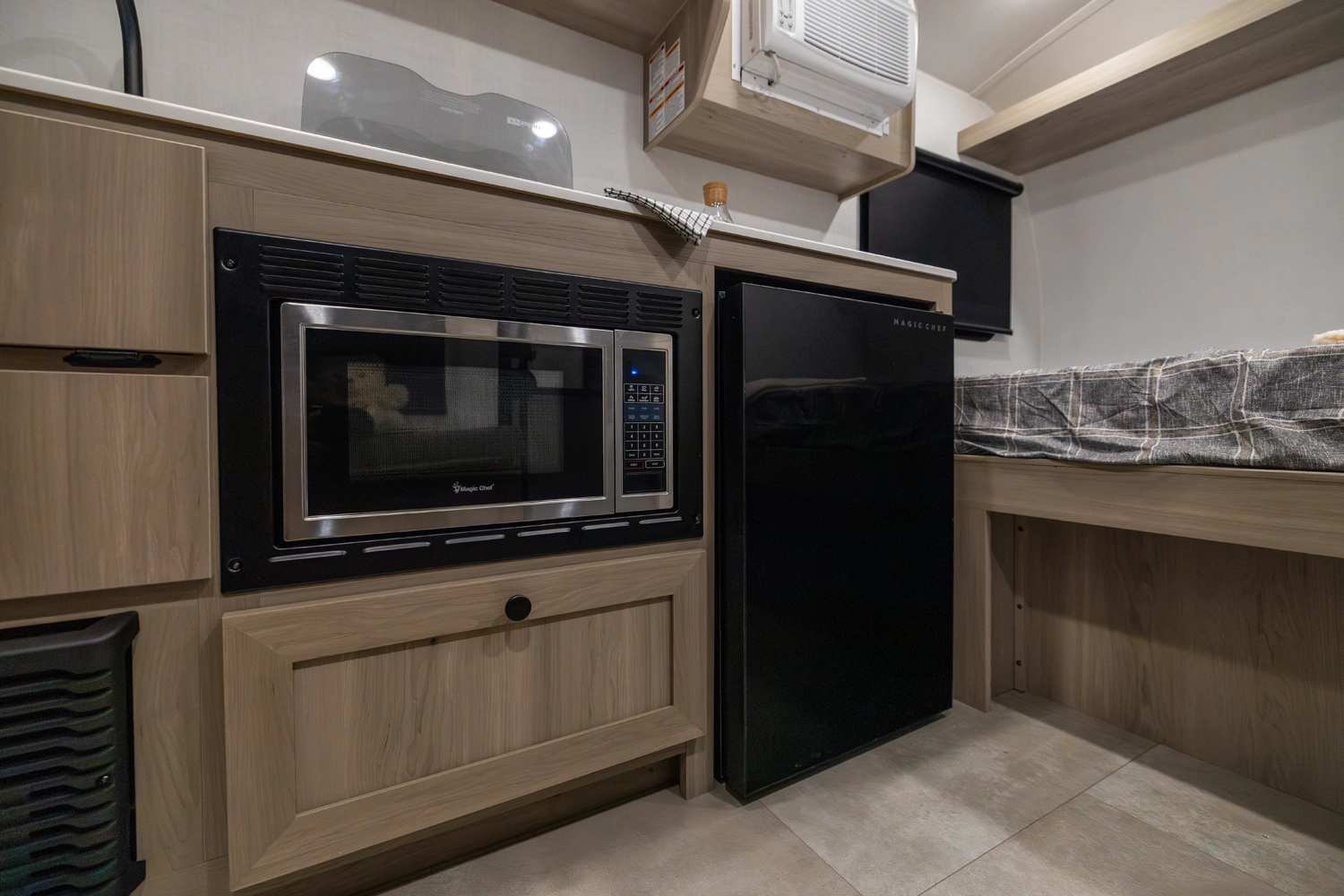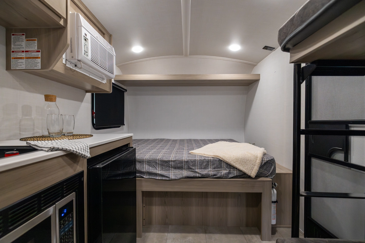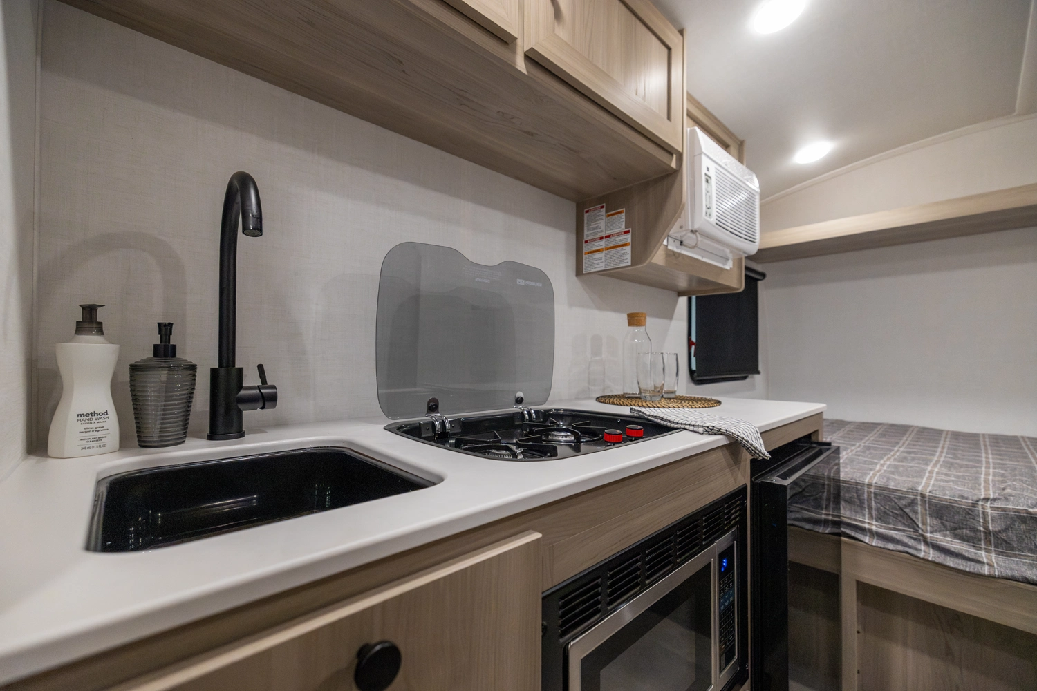 The E-Pro 13LE is a lightweight, budget friendly camper designed for easy towing and adventure. It features a front bed, a compact wet bath, and smart storage throughout, maximizing comfort in a small footprint. Built with Flagstaff’s quality construction, the 13 LE is perfect for first time campers or those seeking affordable, high-quality travel without added cost and weight.