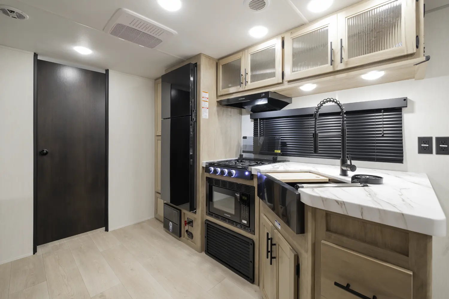 • Blackout Glass, Safety Slam, Friction Hinge Entry Door with Window and Shade Prep (N/A on LP models)
