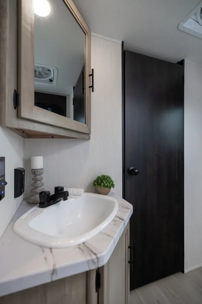 • Blackout Glass, Safety Slam, Friction Hinge Entry Door with Window and Shade Prep (N/A on LP models)