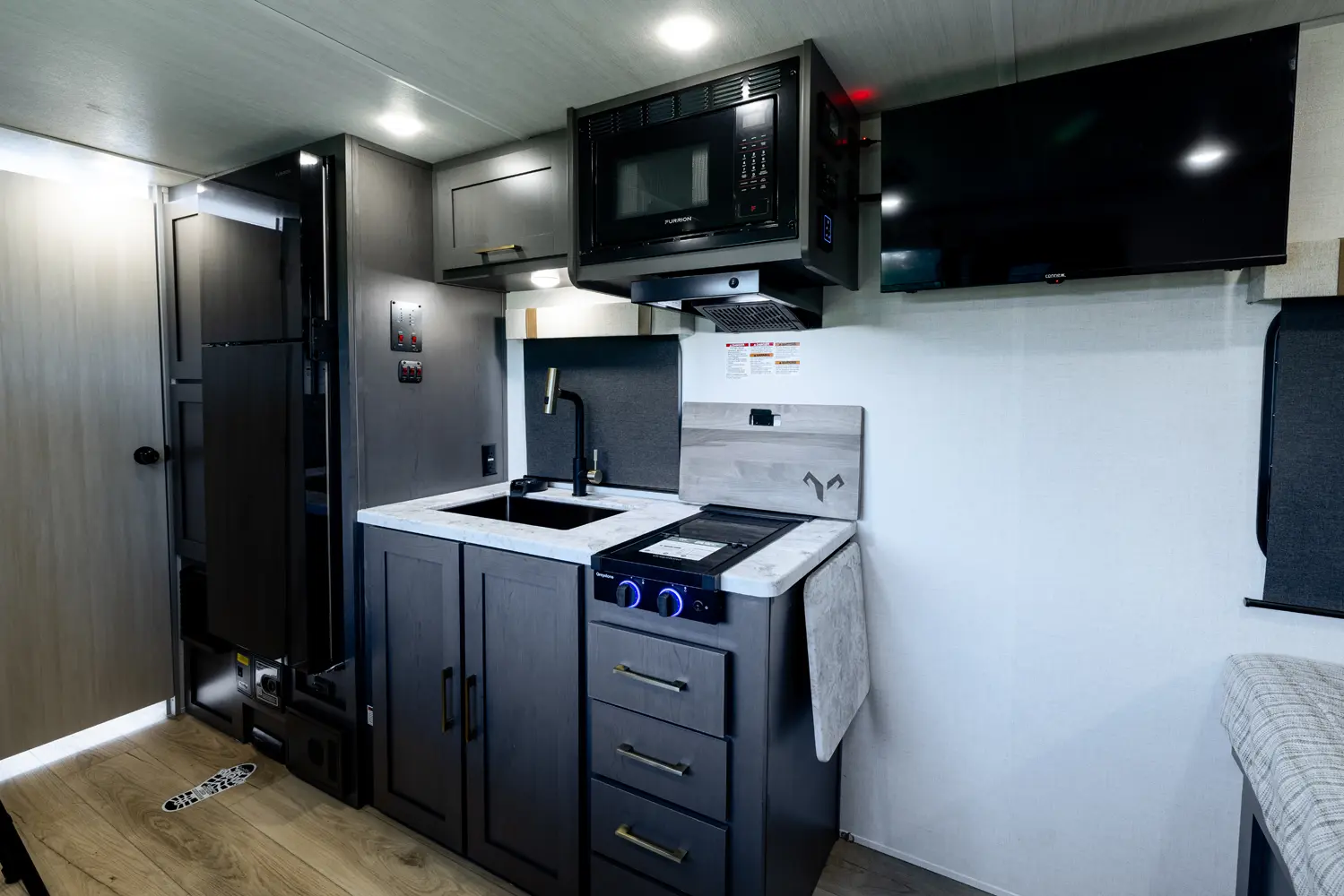 The 16MKD is a nimble, family-friendly travel trailer that delivers big comfort in a manageable 21'8" design. A front queen bed offers a cozy retreat for adults, while twin bunks are perfect for kids or guests. The full rear-corner bath adds privacy and convenience, making this trailer ideal for both quick getaways and extended adventures. Compact, capable, and thoughtfully designed — the 16MKD makes family travel effortless.