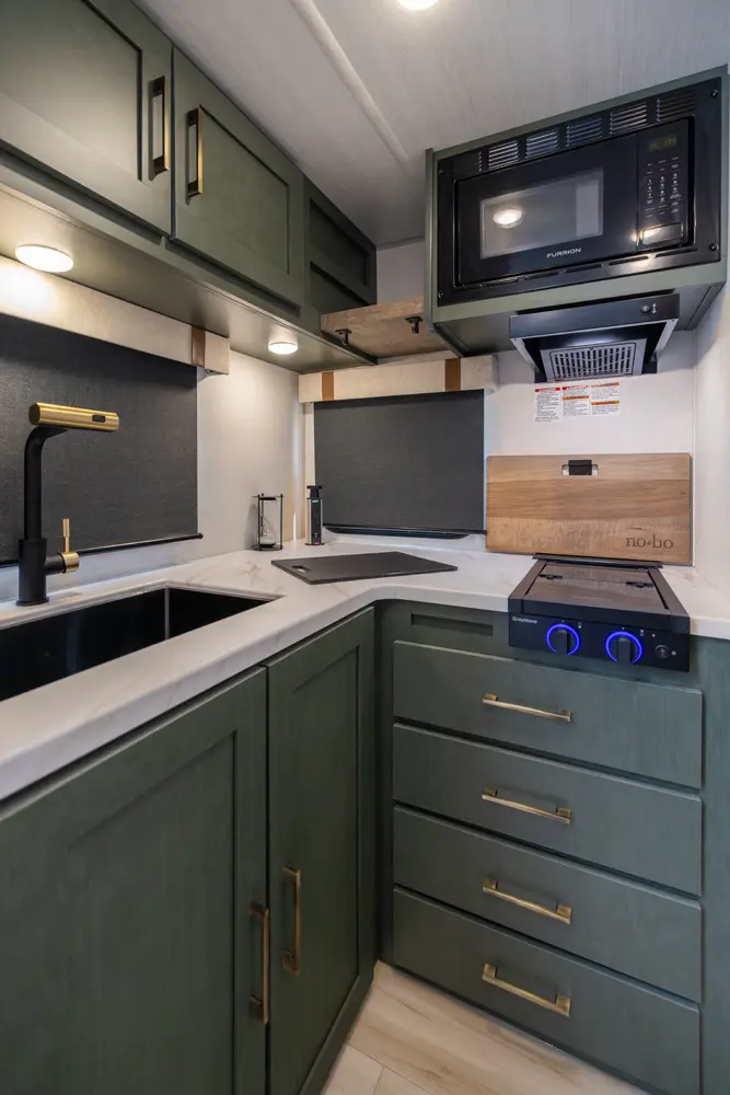 The NB18.0 is a rugged yet refined travel trailer that packs full-feature living into a compact, adventure-ready design. A front queen bed and central kitchen/living area make it easy to cook, relax, and rest in comfort. Outside, a 12' awning and exterior access points keep you connected to the outdoors. Lightweight and purpose-built, the NB18.0 is your go-anywhere base for adventure and relaxation.