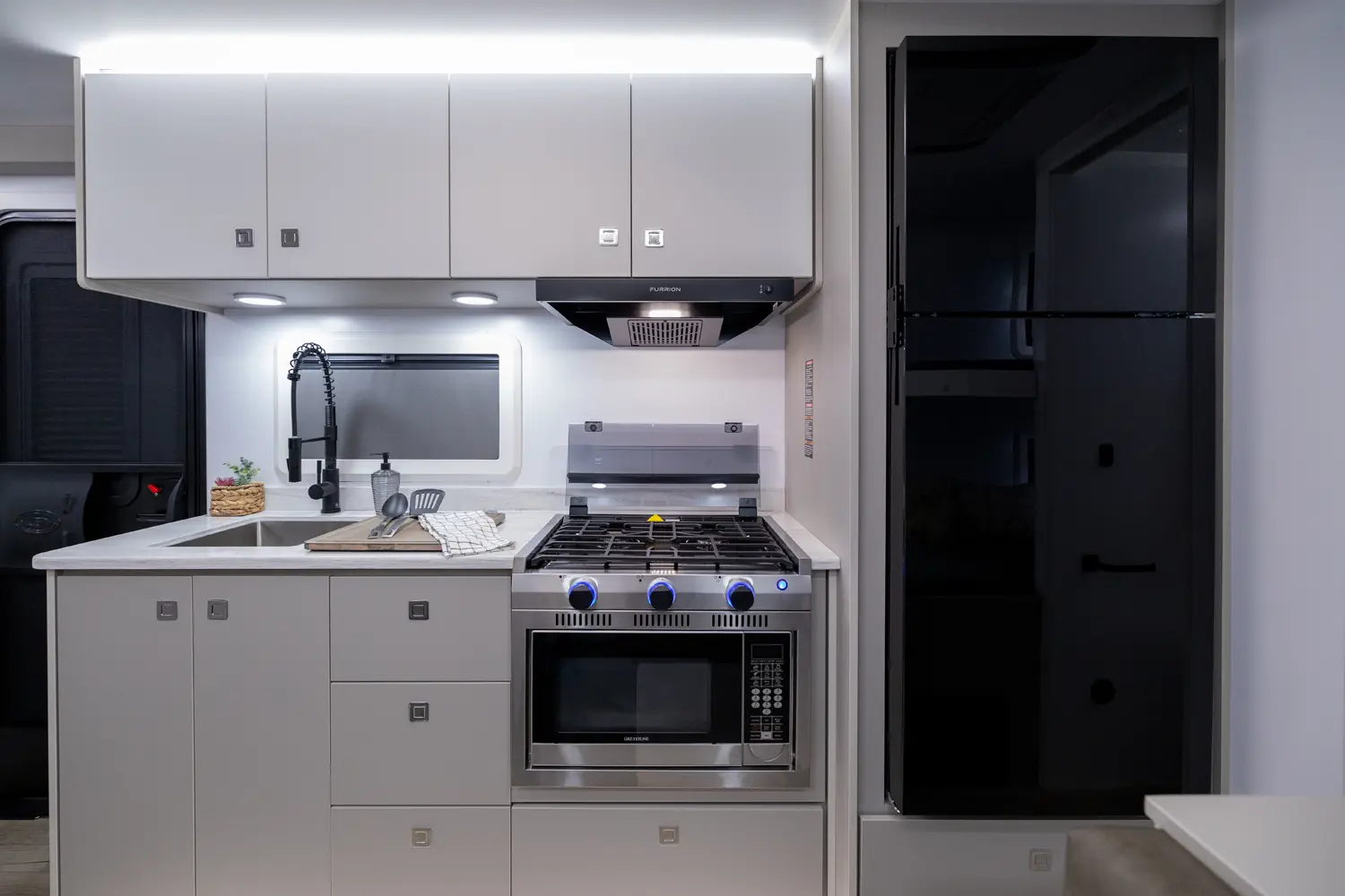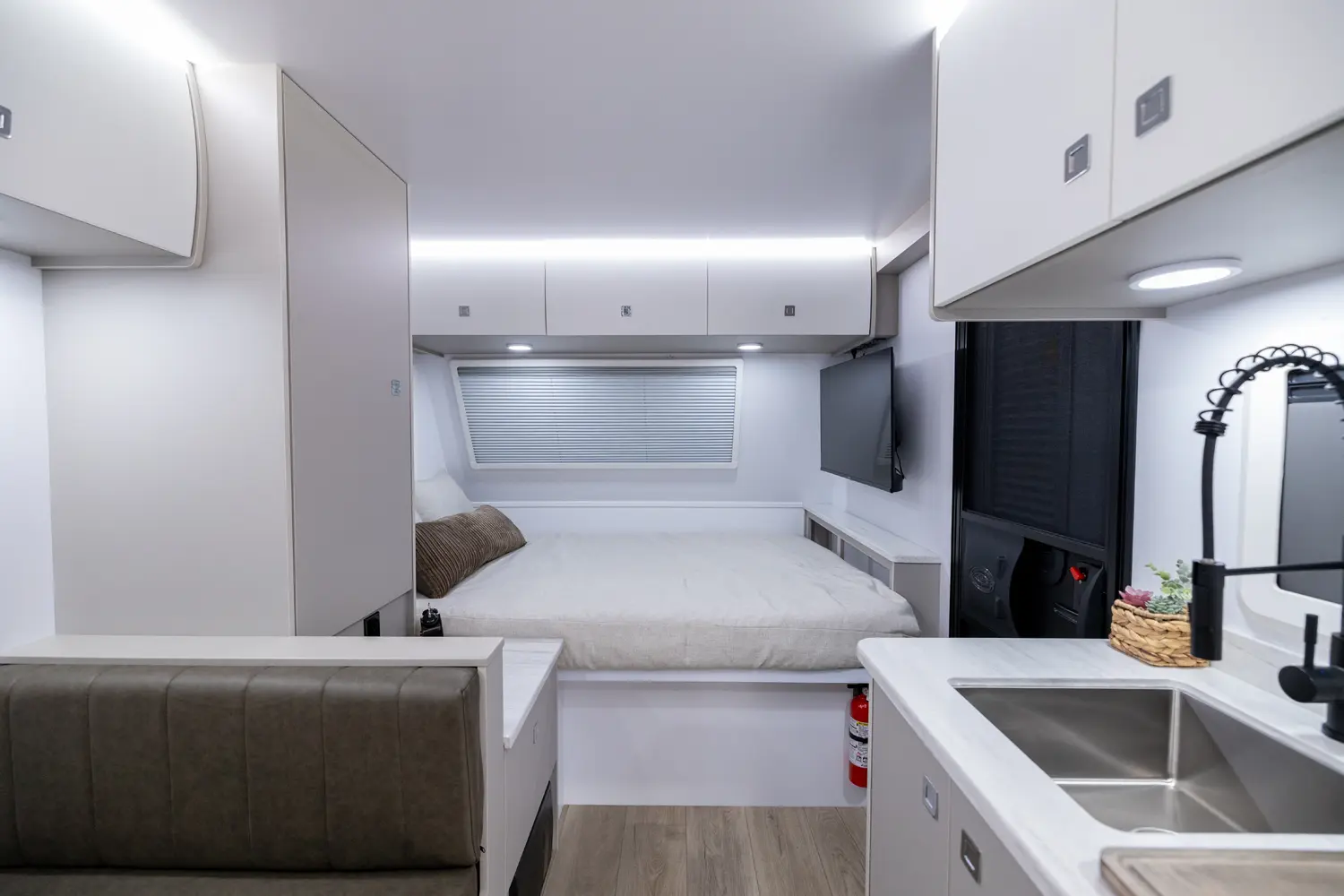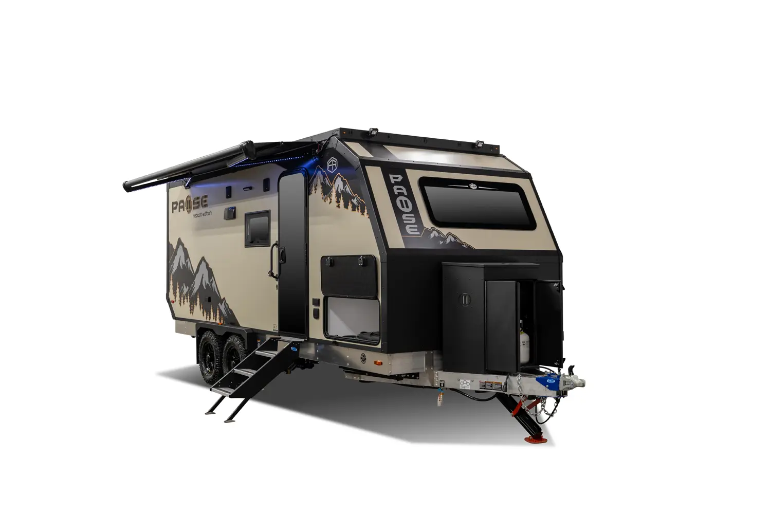Bringing your mother-in-law on camping adventures is easier than ever with this floorplan! It features a full-size queen, 2 bunks, and a 4-person dinette that converts into an extra bed, ensuring comfortable sleeping for your family. The oversized passthrough storage area and 24 cabinets provide ample space for all your belongings. With the robust solar system, you can go off-grid and operate all trailer components.
