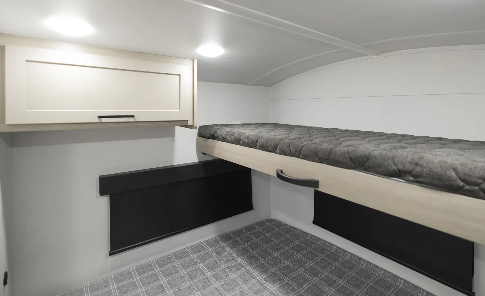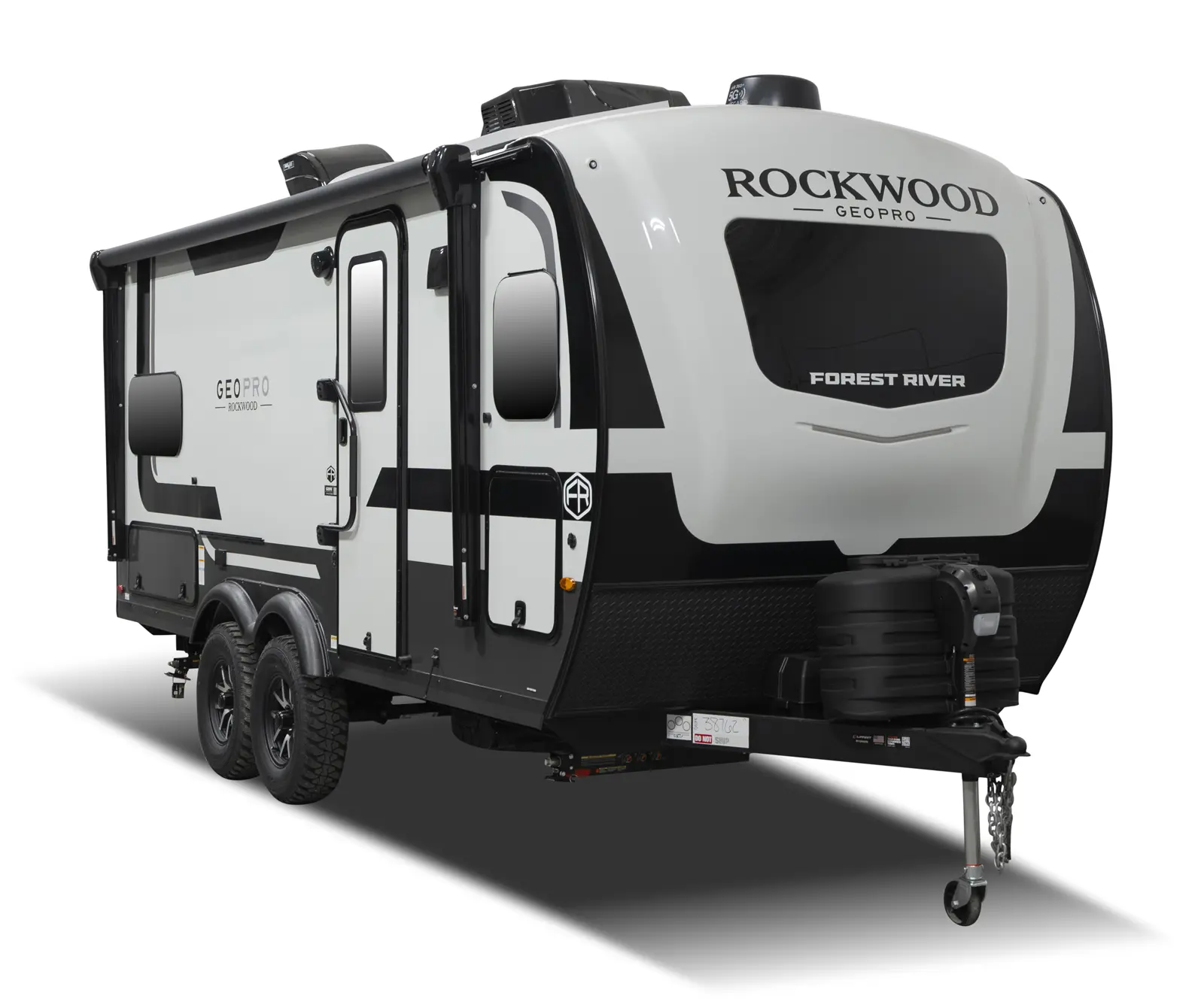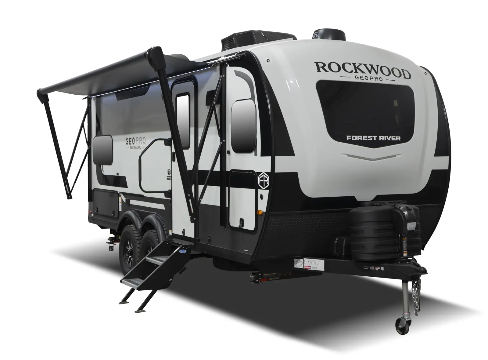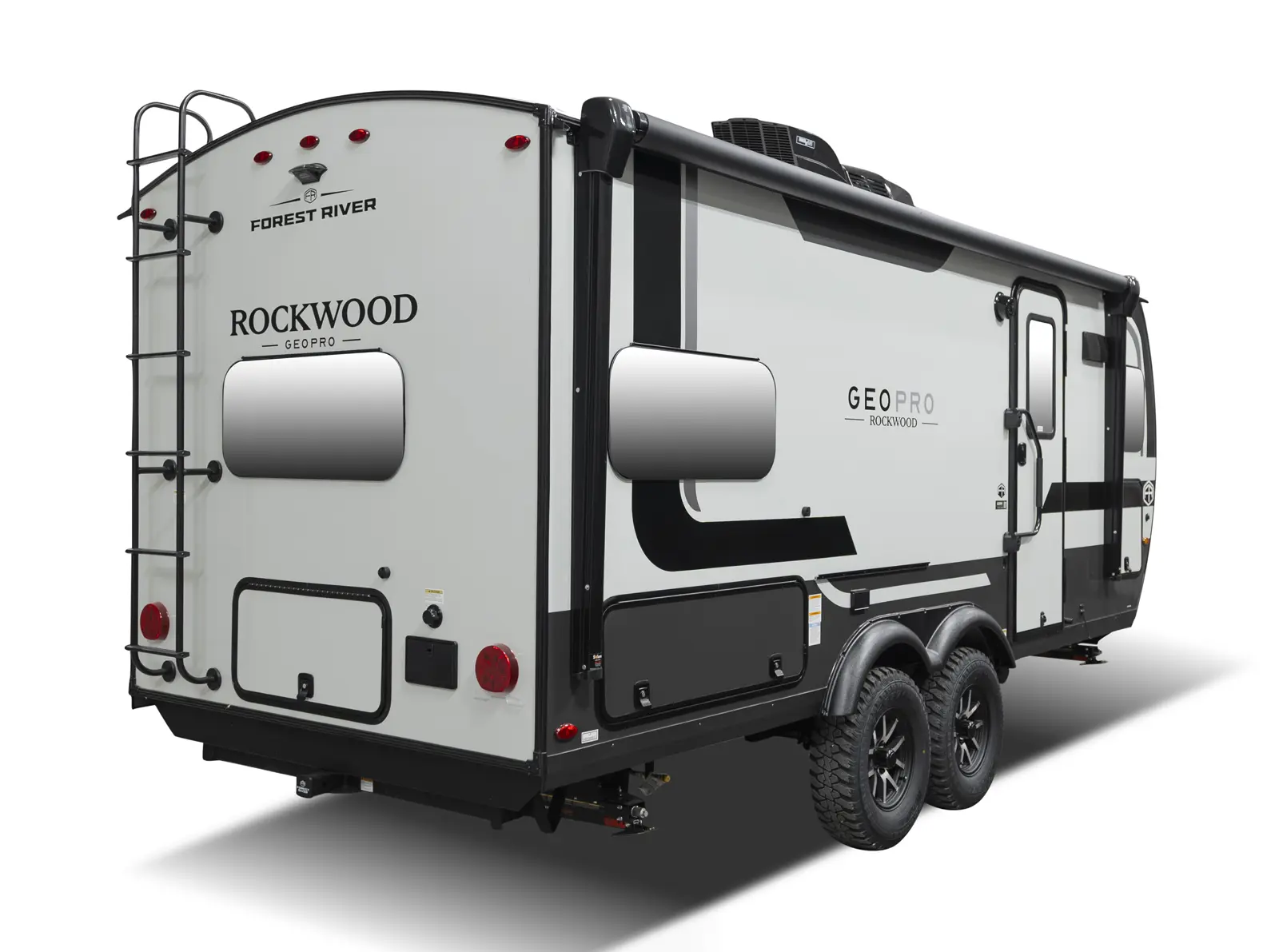 The 20FK is a compact trailer packed with big features! Our first dual axle Geo Pro gives you improved stability and towing confidence in a lightweight design. The front kitchen offers excellent counter space while the rear sleeping area and slide-out create a comfortable, open living space. At just over 21 feet, and around 4,200 lbs., the 20FK delivers easy towing with the durability and off grid features that Rockwood is known for.