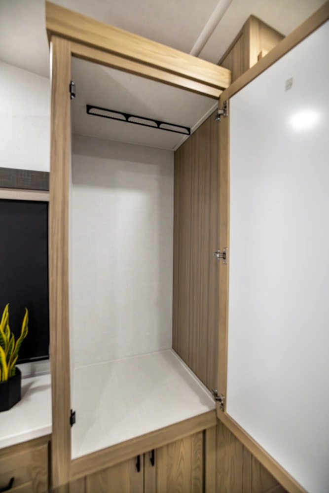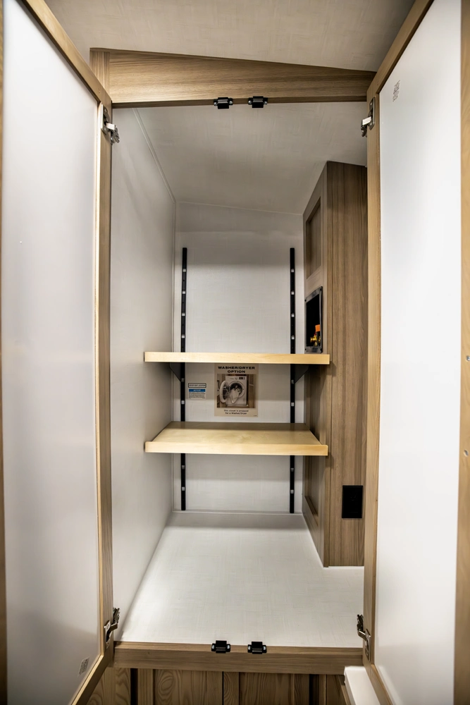 Experience the spacious and smart design of the Rockwood 290SFK fifth wheel. This full profile floor plan features a versatile front kitchen with 86" interior height, abundant counter space and storage, a comfortable living area with theater seating and entertainment center, in a private king size bedroom. With slide outs to expand your space, residential-style comforts throughout, and quality construction, the 290SFK makes every trip relaxing and enjoyable.