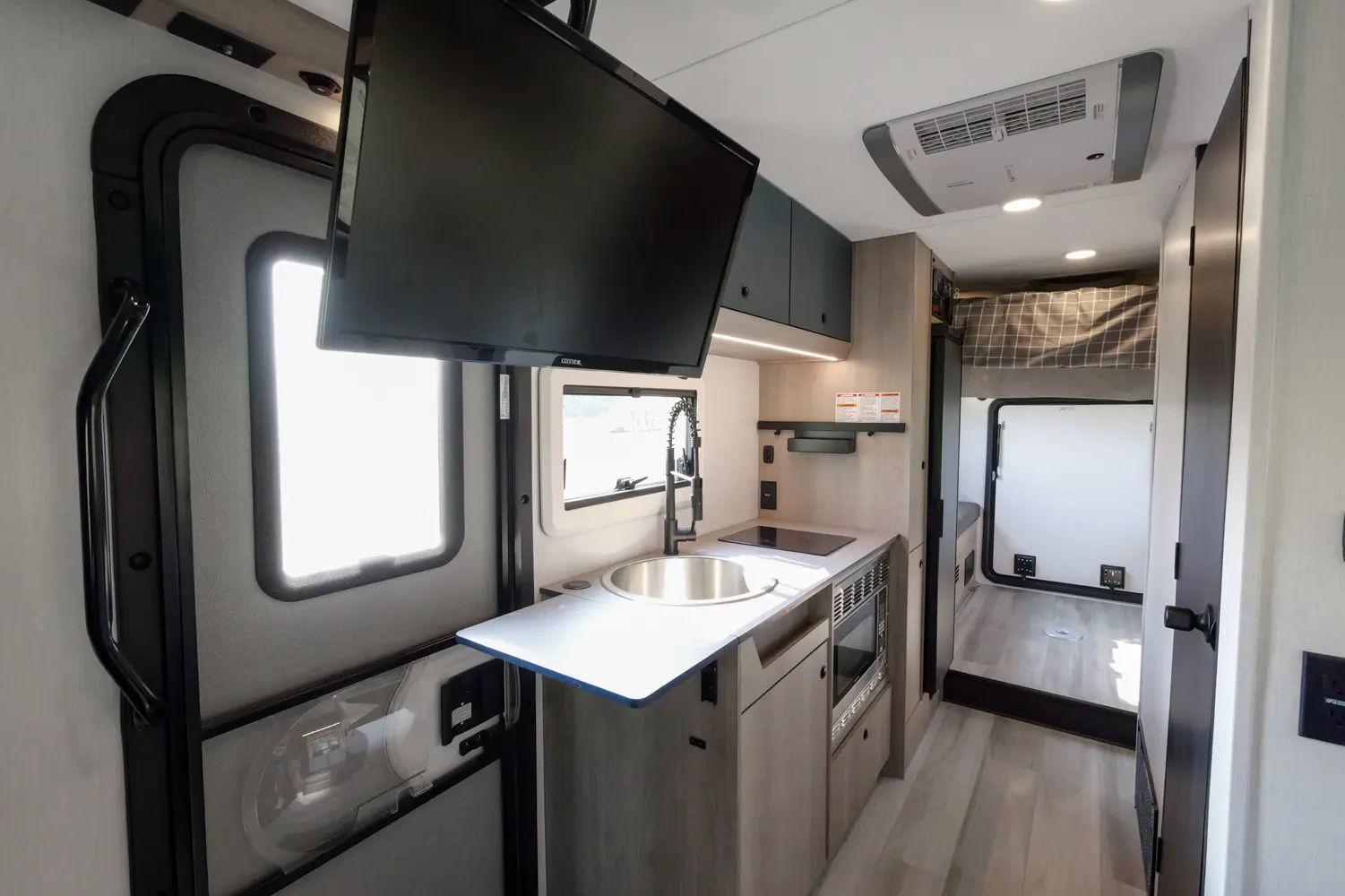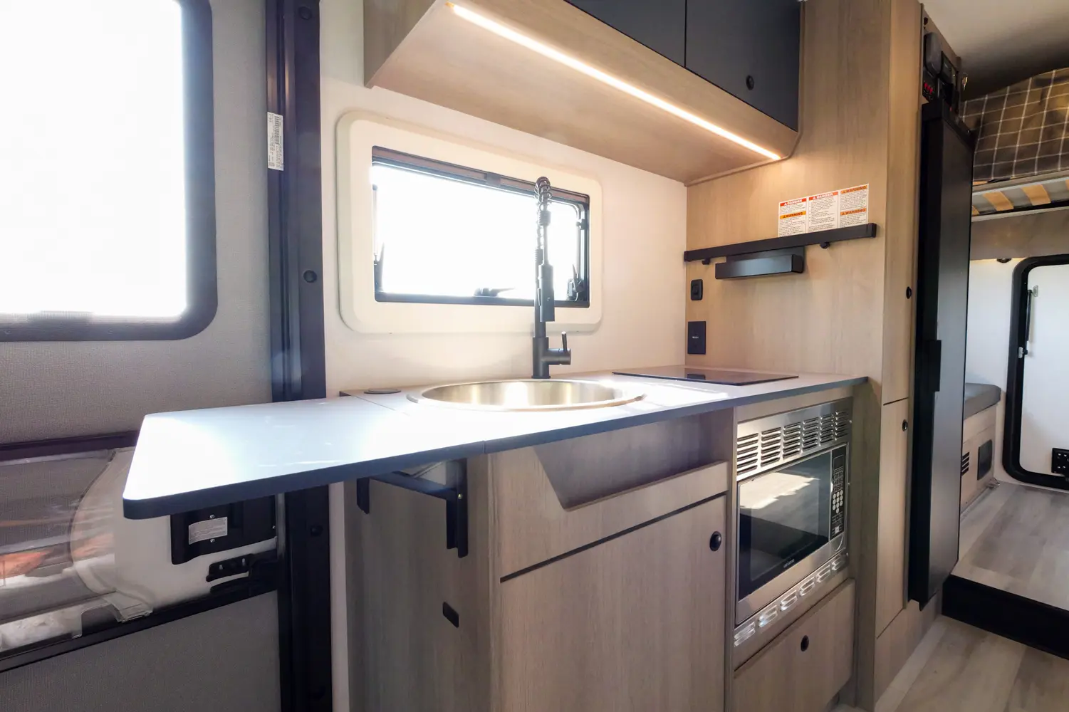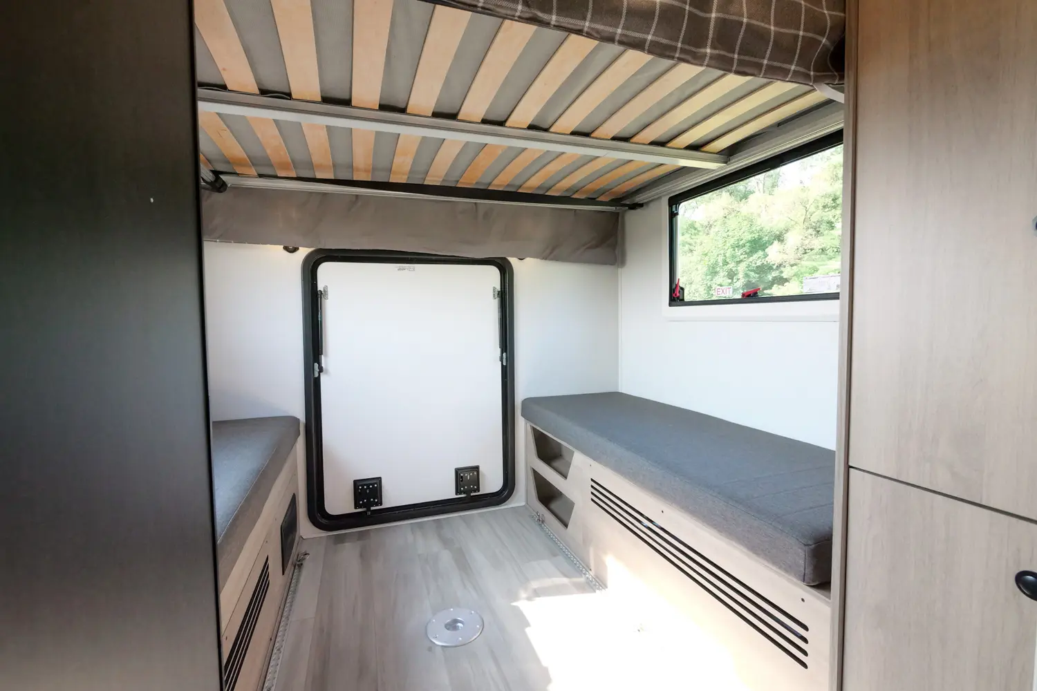 • Lightweight dual pane euro-style windows with built-in screens and blackout shades
