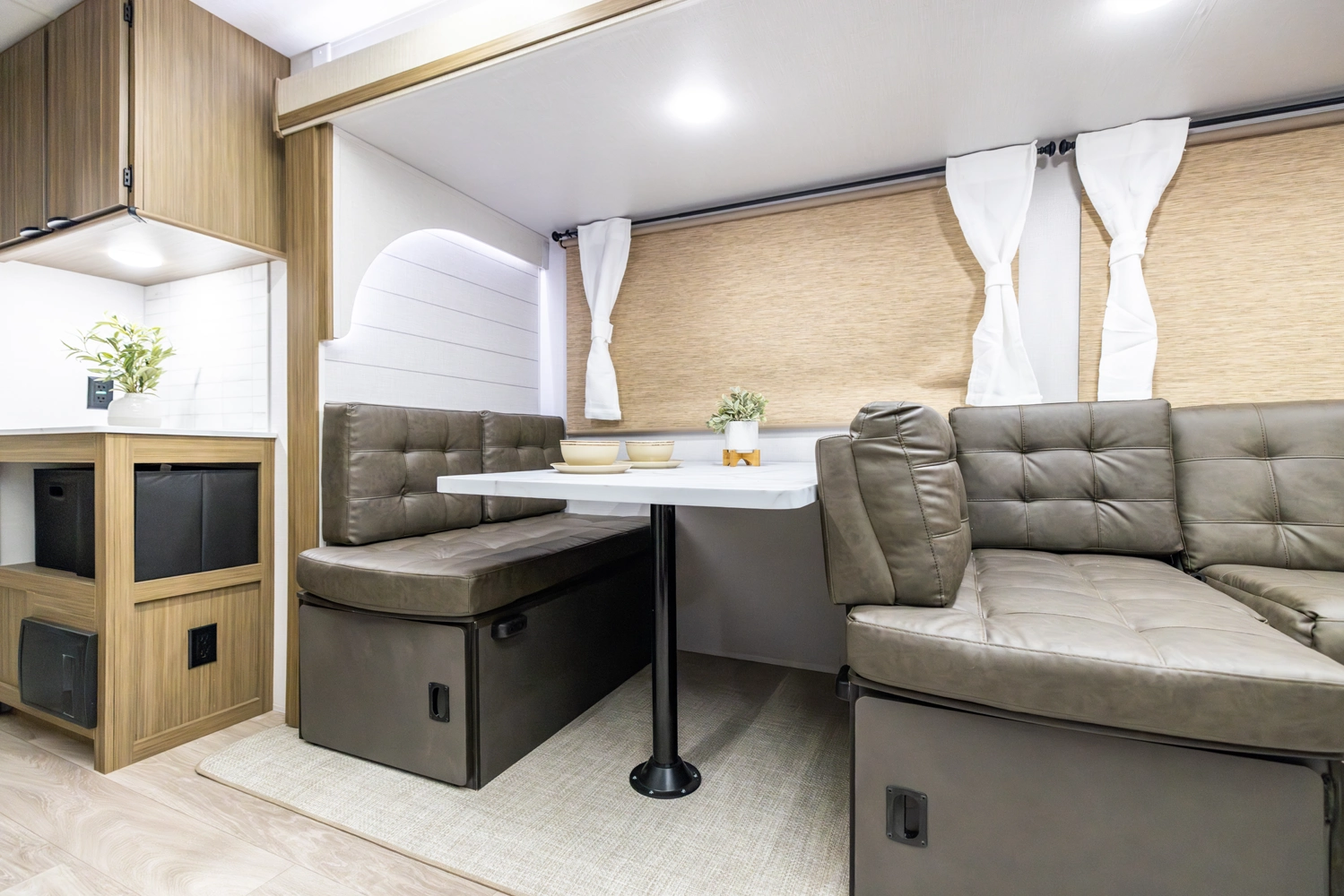 The 32BHDS is the ultimate bunkhouse, with two total slide outs and an outside kitchen. This well-equipped travel trailer features oversized panoramic windows, the ever-popular U-dinette, which you can customize with the adjacent Versa-Lounge. The kitchen includes a 11 CU. FT. refrigerator and stovetop with oven and LED accents, plus cabinets for all your cooking essentials!